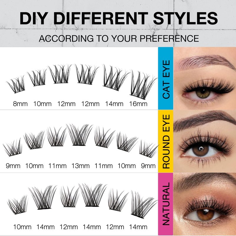 - 【Great Quality】Cluster lashes are made of High-quality silk fiber, which is soft, lightweight, and can maintain excellent curvature for a long time. These cluster lashes look real, not plastic, can naturally match your own lashes. Meanwhile, the bond of our eyelash clusters are heat-bonded which means it's not easily fall apart. The eyelash clusters can be reused many times with proper care.