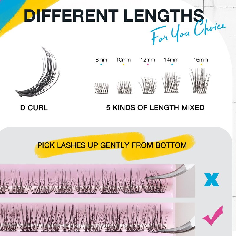 - 【Updated DIY Lash Clusters】120Pcs in one tray, the length from 8 to 16mm, D curl. Individual lashes take less time to complete one eye compare with normal false lashes. Try these cluster lashes on, more cluster lashes styles to choose.
