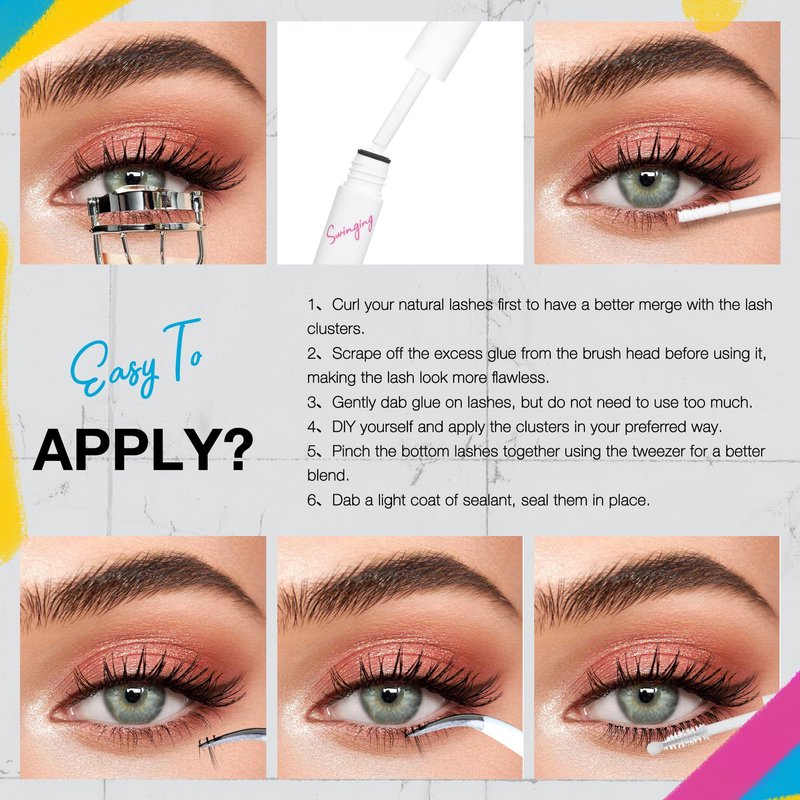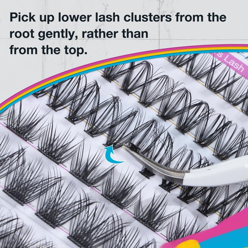 - 【How to use the cluster lashes】Gently take lashes off the strip by grab them at the root, and place them under your own eyelashes rather than above. Repeat the steps above to get the lashes extension you like.