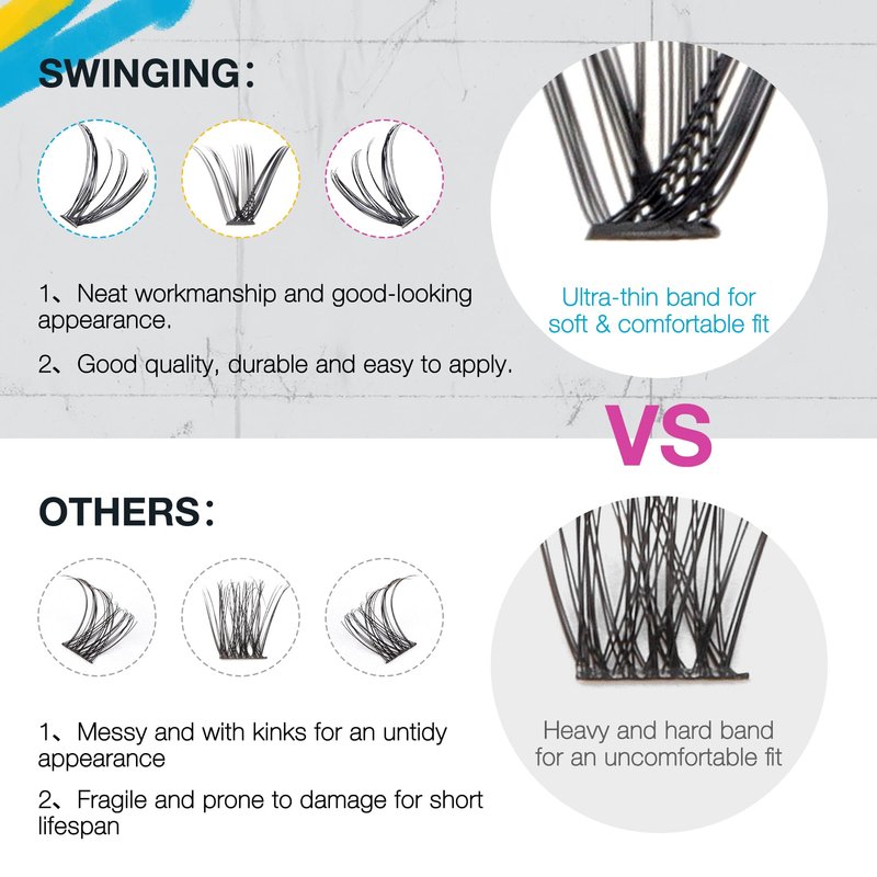 SWINGING Lash Clusters and Bottom Lashes Cluster Eyelash Extensions 30D Eyelash Clusters Natural Look Wispy Lashes D Curl Cluster Lashes Individual Lashes Thin Band & Soft