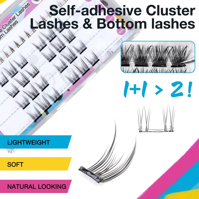 - 【1-Step Application】Only 1 step finish apply, saving more money. The self-adhesive cluster lashes are easy to wear, just press the lash clusters underneath your natural lashes, no need to buy lash glue. Eliminate the step of applying lash glue and waiting for the glue to dry, shortening your eye makeup time. You don't have to put up with lash glue sticking to your skin and ruining your makeup.