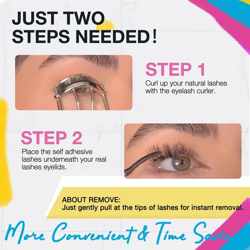 - 【1-Step Application】Only 1 step finish apply, saving more money. The self-adhesive cluster lashes are easy to wear, just press the lash clusters underneath your natural lashes, no need to buy lash glue. Eliminate the step of applying lash glue and waiting for the glue to dry, shortening your eye makeup time. You don't have to put up with lash glue sticking to your skin and ruining your makeup.
