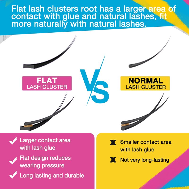 - 【Self Adhesive Lash Clusters】Update Pre-glued Flat Lash Clusters! No extra glue needed and no more waiting for glue to dry. The process of applying and removing the lashes is very simple and perfect for newbies. You can finish wearing a pair of eyes in less than 1 minute!