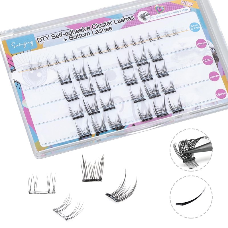 - 【1-Step Application】Only 1 step finish apply, saving more money. The self-adhesive cluster lashes are easy to wear, just press the lash clusters underneath your natural lashes, no need to buy lash glue. Eliminate the step of applying lash glue and waiting for the glue to dry, shortening your eye makeup time. You don't have to put up with lash glue sticking to your skin and ruining your makeup.