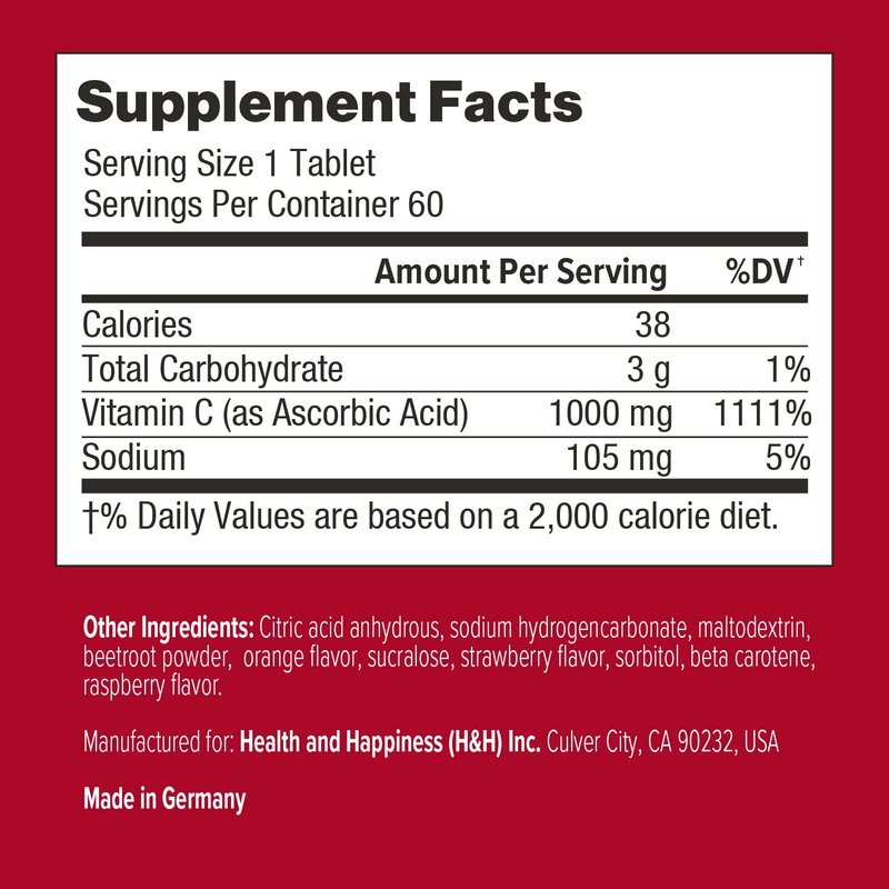 - DELICIOUS NATURAL STRAWBERRY FLAVOR: Dissolvable Vitamin C tablets create a refreshing and fizzy strawberry flavor drink.
