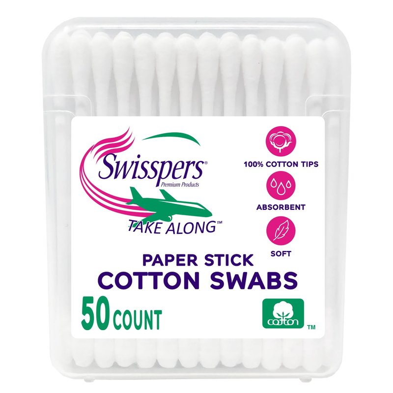 - Contains 6 travel size packs containing 50 cotton swabs each