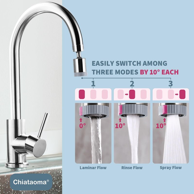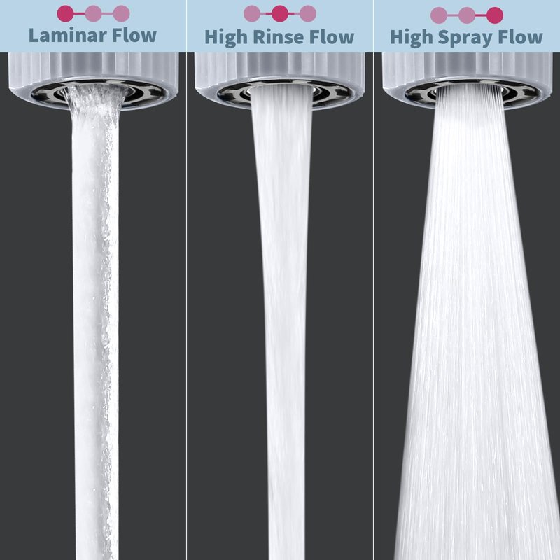 - 💧【3 High Water Flow Desiagn】This swivel faucet nozzle has high flow strong shower flow, laminar flow and rinse flow (this mode is between the laminar flow and strong).You can easily switch between three modes by rotating the bottom part of the faucet aerator. You can now adjust the water output and water pressure according to your actual needs. This helps minimize water splashing and wastes while effectively providing your needs.