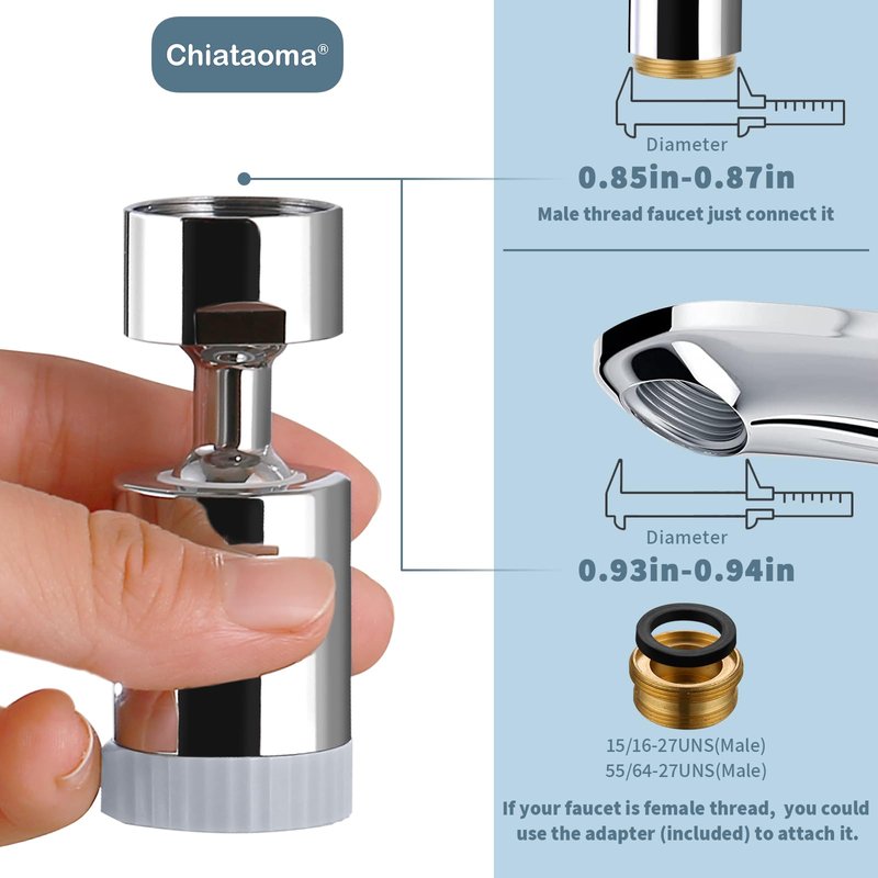 - 💧【360° Swivel High Flow Faucet Aerator】You can rotate the middle part of the aerator,which make the high water flow reach to every corner of the bathroom or kitchen sink, which makes it easy for washing and cleaning.