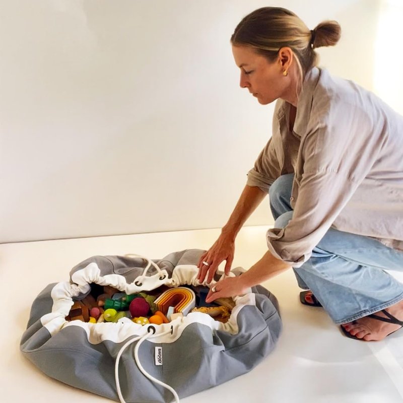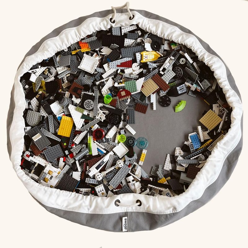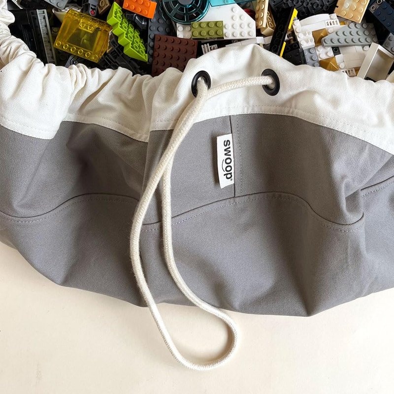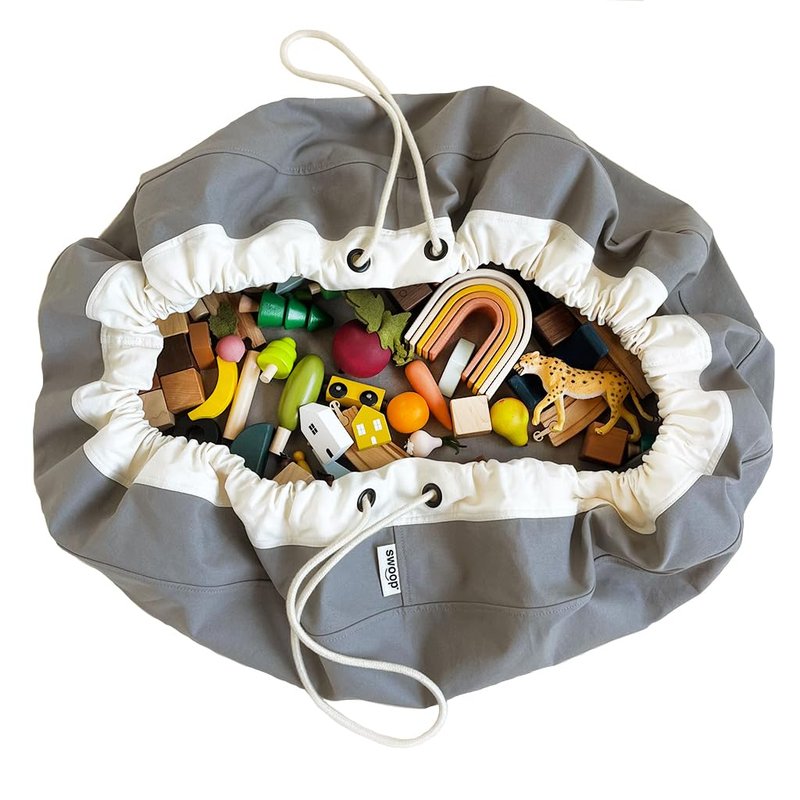 Swoop Bags - New! Organic Cotton Canvas Toy Storage Bag - Ideal for Small Toys - Drawstring Organizer and Play Mat - GRAY - Cool Storage Holders For Kids Rooms and Playrooms
