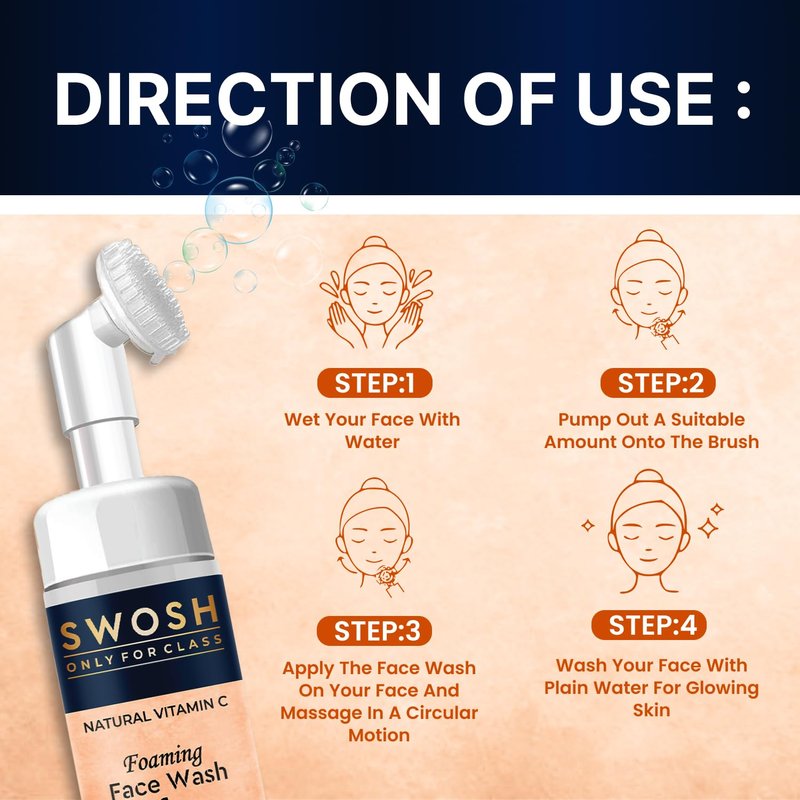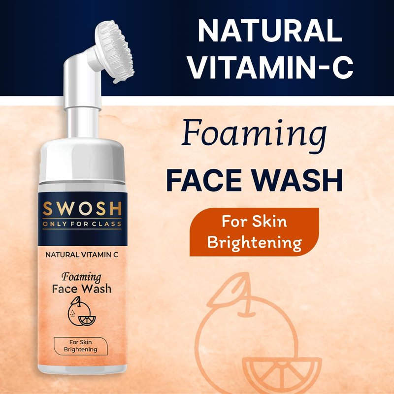 - Swosh Natural Vitamin C foam face wash integrated brush help to cleanse softly and skin care solution perfect for everyday use, Suitable for all skin types.