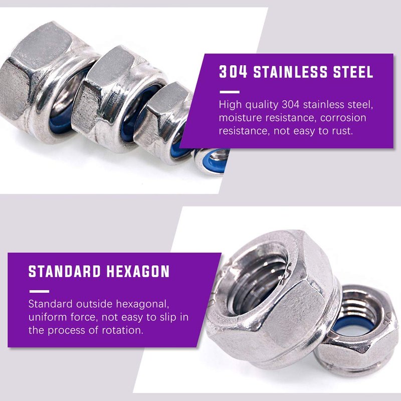 - ☛ MULTIFUNCTIONAL ASSEMNLY KIT ------ Advanced 304 stainless steel nylon locking nut, 7 common sizes, general, convenient, easy to use, very suitable for professionals and DIY users. This suite is one of the few products on the market. It has high quality and better quantity. It is an economical and efficient choice.