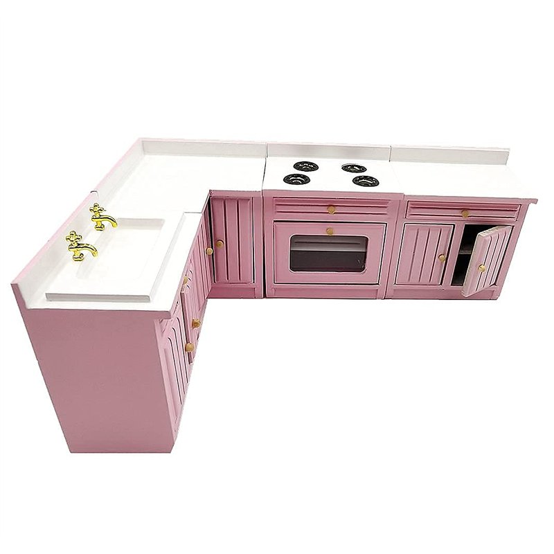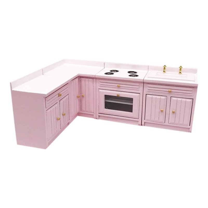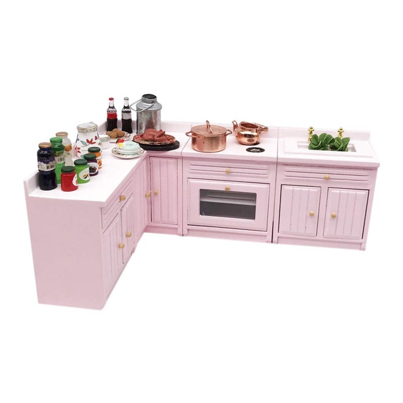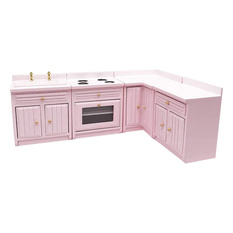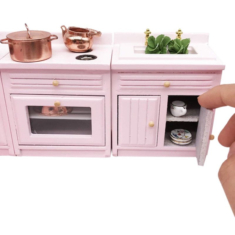 SXFSE Dollhouse Decoration Accessories,1:12 Dollhouse Miniature Furniture Wooden Kitchen Cabinet Set Freely Combined (Pink)