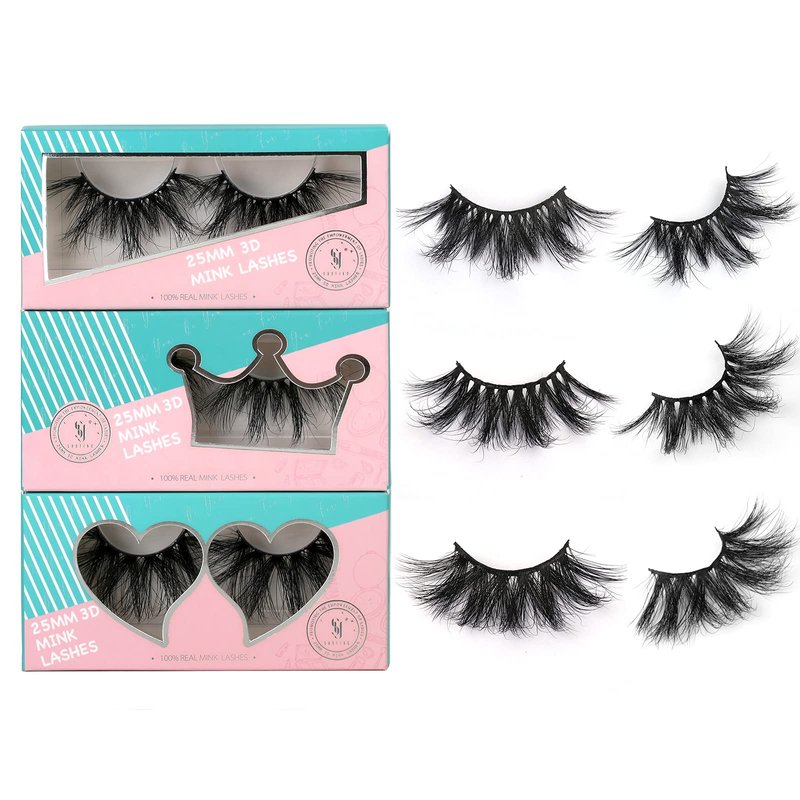 SY LASHES 25mm Mink Lashes 3D Real Mink Eyelashes Fluffy Dramatic False Eyelashes 6D Wispy Long Thick Handmade Luxury Volume Strip Eye Lashes (3 Pairs, Doll Honey Queen)