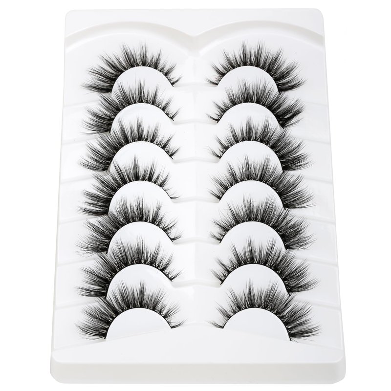 SY SHUYING False Eyelashes 15mm Faux Mink Lashes with Superfine Band Natural Look Fluffy Cat Eye Strip Lashes Soft Wispy Luxury Volume Fake Eyelash 7 Pairs Pack