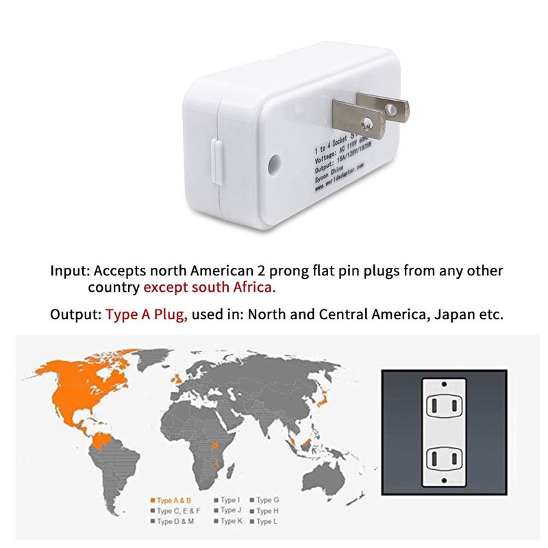 - Extender your adapter plug: 4-outlets ( 2 for TYPE-A plug use, 2 for TYPE-B plug use ) , a nice ideal for home or office use.