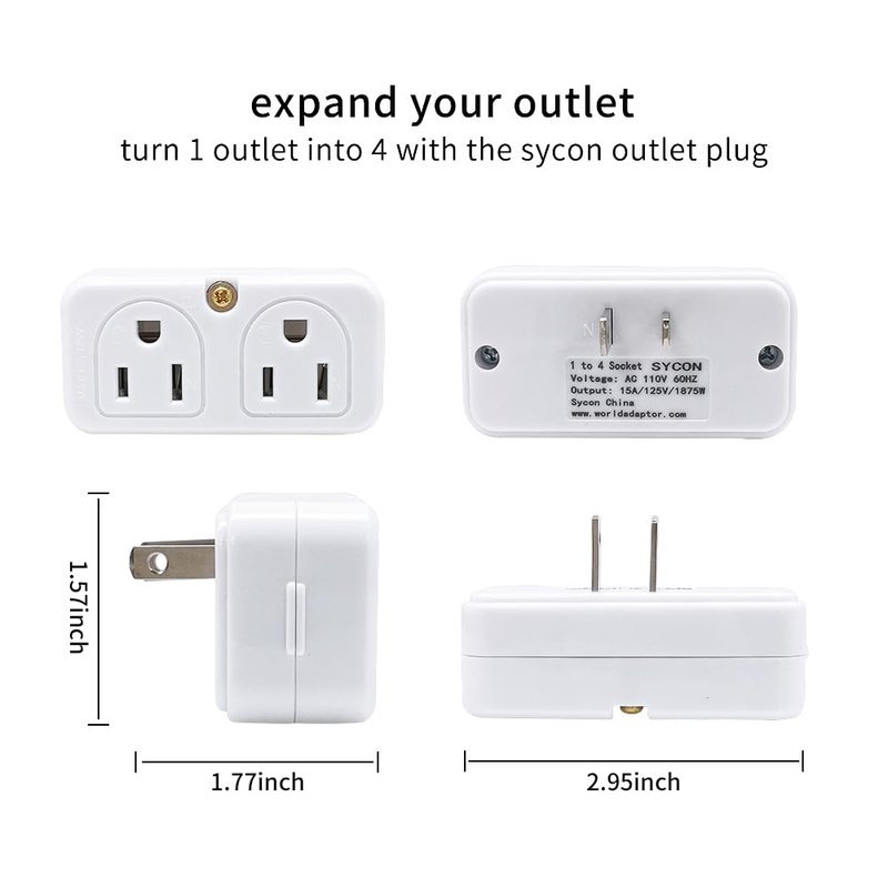 SYCON Adapter Outlet Extender, 2-Prong Mini Wall Plug, Multi Outlet Splitter with 4 Outlets