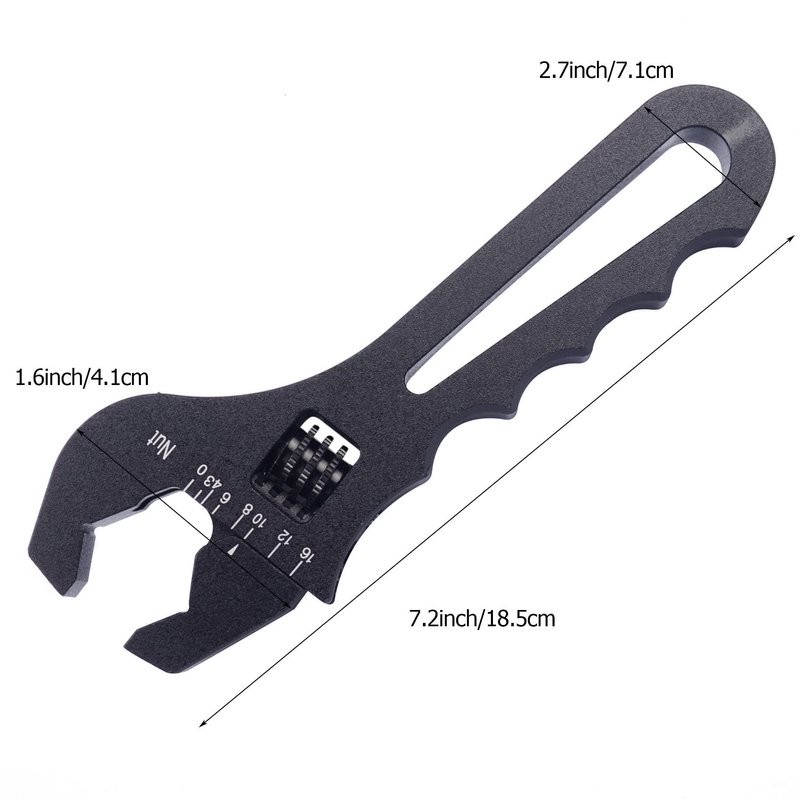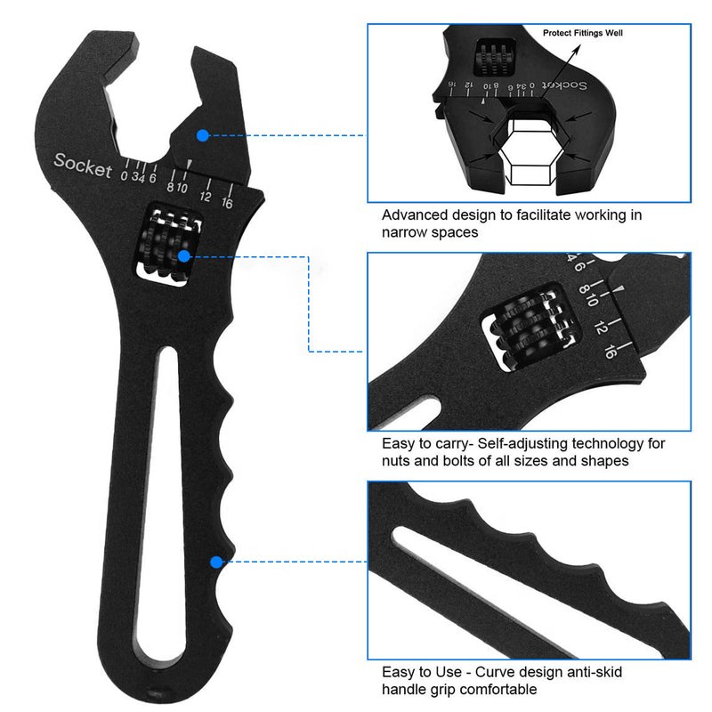 SYKRSS An Fitting Wrench 3AN-16AN Adjustable Wrench Aluminum Lightweight Spanner Tools for An Hose Fitting Adapter End, Black