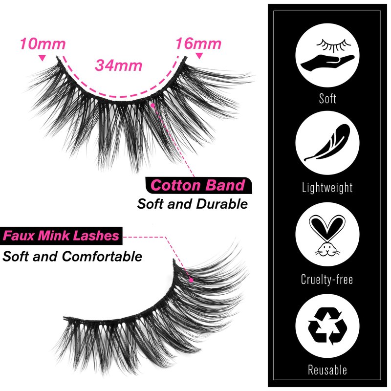 - Beginner Friendly - Strip eyelashes are easy to apply and remove. Even lash beginners can get charming look by themself. The lashes is also reusable with proper care.