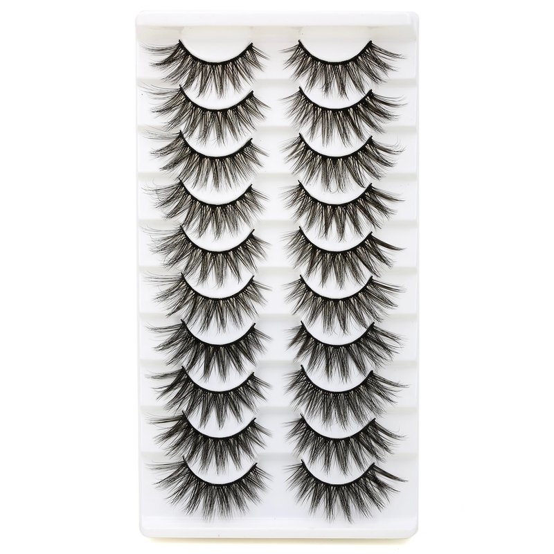 SYlashes False Eyelashes 16mm Faux Mink Lashes Fluffy Cat Eye Lashes Soft Wispy Crossed Luxury Volume Fake Lashes 10 Pairs Pack