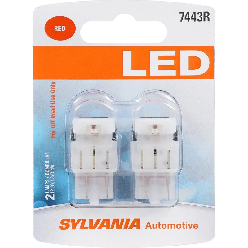 SYLVANIA - 7443 T20 LED Red Mini Bulb - Bright LED Bulb, Ideal for Stop and Tail Lights (Contains 2 Bulbs)