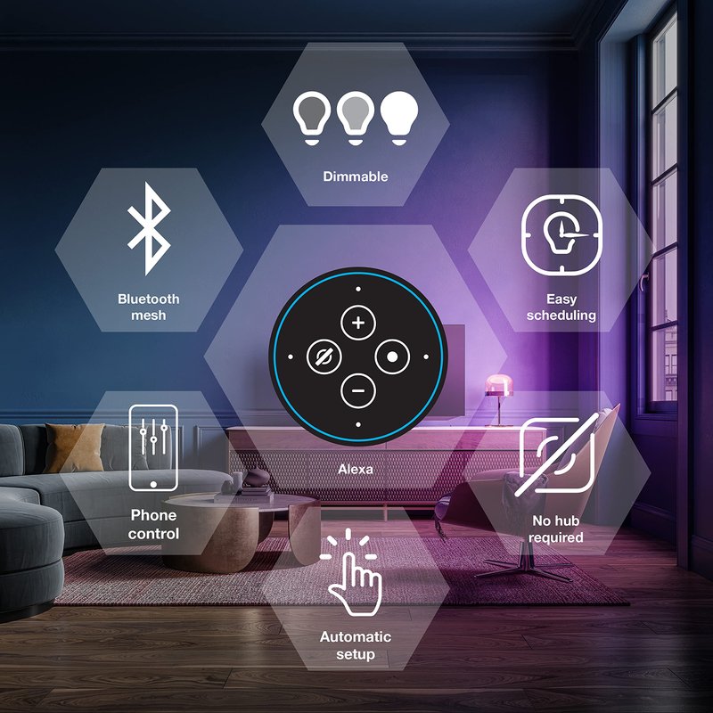 - BLUETOOTH LOW ENERGY (BLE) MESH BULB-TO-BULB CONNECTIVITY - Connect hundreds of bulbs / Extend your voice control ability beyond wifi dead zones / Each Bluetooth bulb acts as its own hub beyond the Alexa Echo device