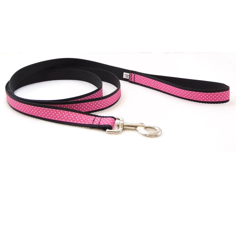 Sylvans Sunset Polka Dot Pink/Black Dog Leash (Lg-1" x6')