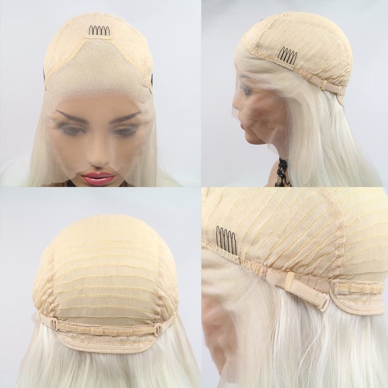Sylvia 24" Platinum Blonde 13 * 4 Lace Front Wigs Long Straight Lace Front Wig Middle Parting 180% Density Half Hand Tied Heat Resistant Fiber Hair For Women
