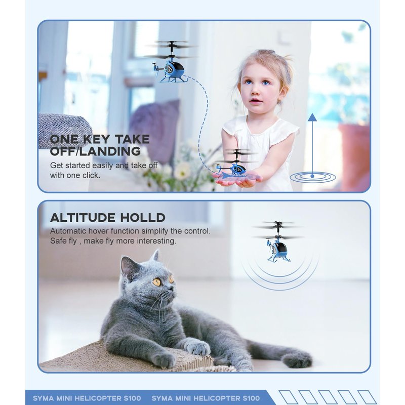 SYMA Remote Control Helicopter, 3.5 Channel RC Helicopters for Kids and Adults, Micro Indoor Aircraft with Gyro, Altitude Hold, One Key Start and Rechargeable Battery, Blue