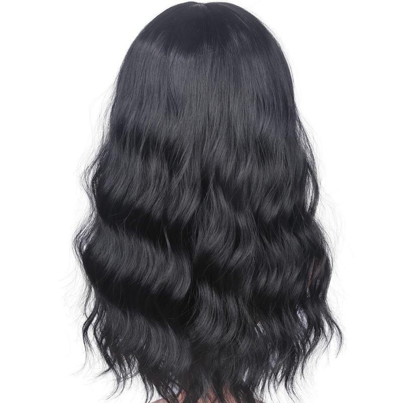 SYMEIW Medium Long Black Wavy Wigs For Women Synthetic Full Hair Natural Black Wigs With Side Bangs For Daily Use 16 Inches (NATURAL BLACK(1#))