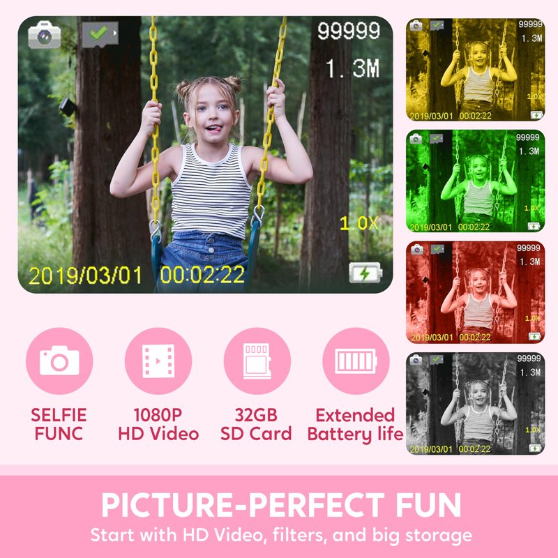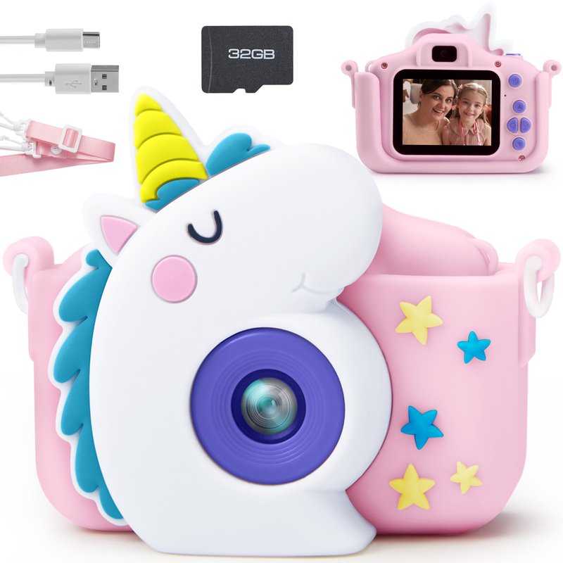 SYNCFUN Kids Camera, Christmas Birthday Gifts for Girls 3 4 5 6 7 8 Year Old, Unicorn Toys Selfie Toddler Camera, 1080P HD Selfie Digital Video Camera with 32GB SD Card (Unicorn)