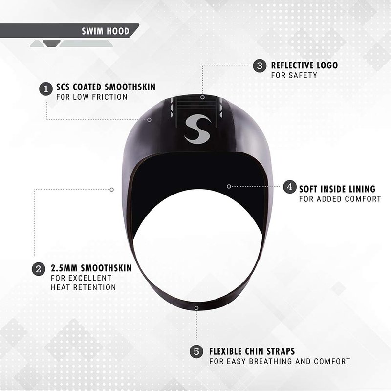 The Synergy Neoprene Swim Hood has silicone infused Yamamoto SCS Smoothskin Neoprene that ensures that this hood cuts through the water with zero resistance. For sizing please see the related image on the top left of your screen.
