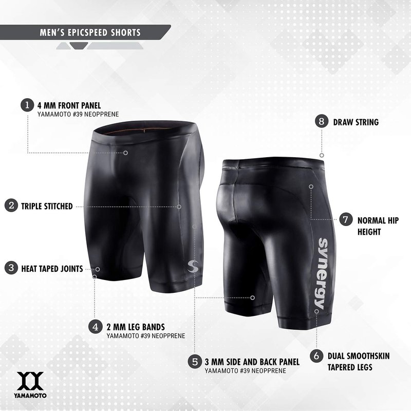 Synergy Triathlon Wetsuit Buoyancy Shorts Men's EpicSpeed Neoprene Shorts for Open Water Swimming (XS) Black