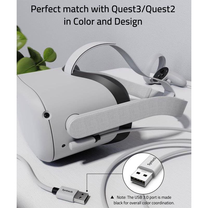 - Compatible with Quest3/Quest2/Pro/Pico4 Accessories: Syntech link cable connects your VR devices to a gaming PC so that you can play all Steam VR games, providing perfect PC VR experience. The color and design of the cable match perfectly with the Quest3, Quest2 headset.