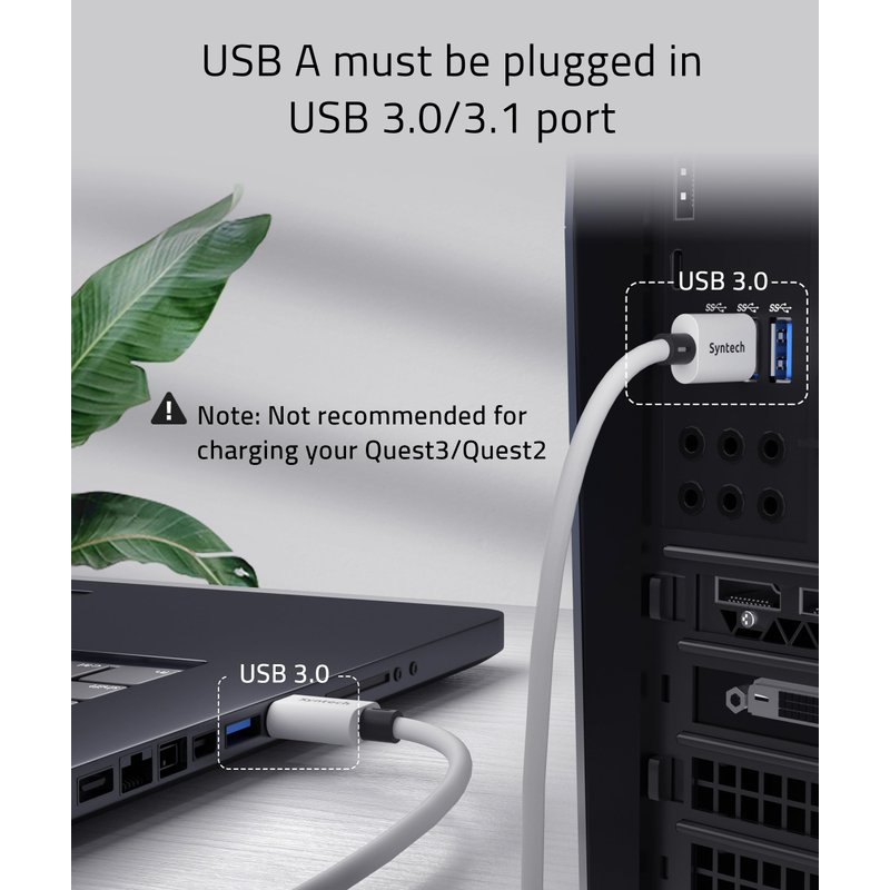 - Super Cost-effective: Syntech Link Cable combining the two advantages of length and excellent connection performance will make you feel good value for money. As a reminder, the charging current will decrease as the cable length increases, so we do not recommend using this cable to charge your Quest3/Quest2/Pro/Pico4. Additionally, to enhance your VR experience, we do not recommend using this cable when the headset is at a low battery level.