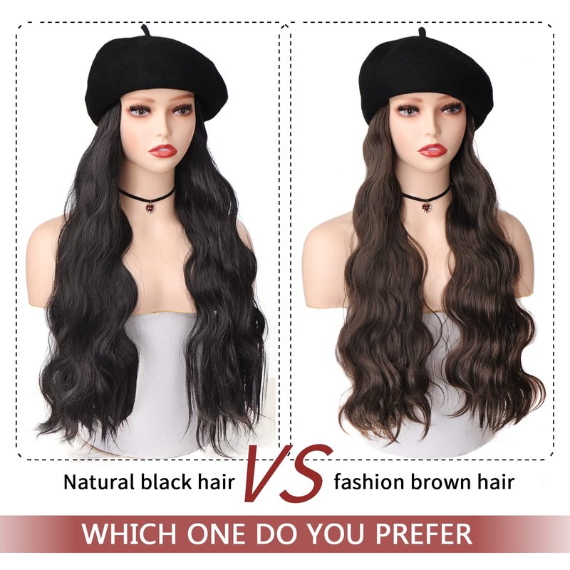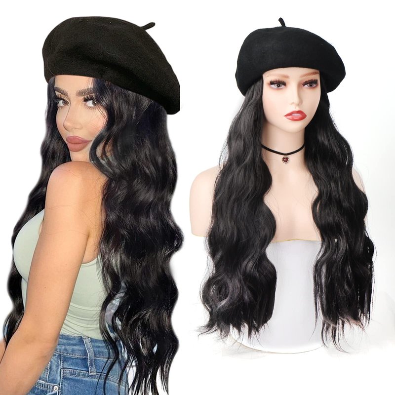 - ★Hair Material: The long wavy beret wig is made of high-quality synthetic fiber, and the hat and hair are one product. Not removable. Hair feels soft to the touch. Easy to wear and not easy to fall off.