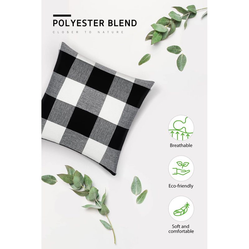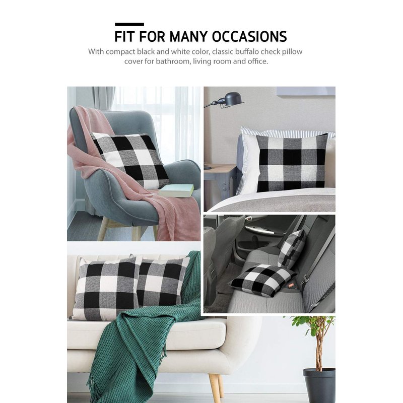 - Multi-purpose – With compact black and white color, classical buffalo check pillow cover fit for bathroom, living room, office and car.