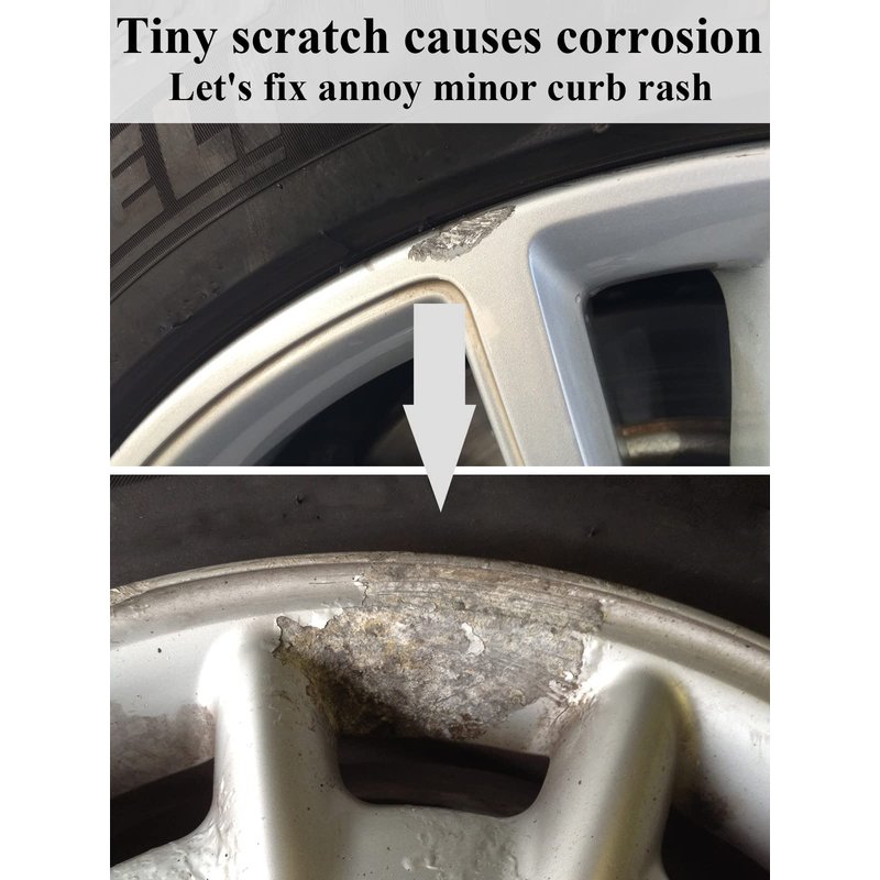 - Tiny scratch causes substantial damage: SYOAUTO rim repair kit can seal away the scratch to prevent future corrosion. If you have a black rim, this product will save you a lot of heartache. We know ugly chip will mark drive you crazy