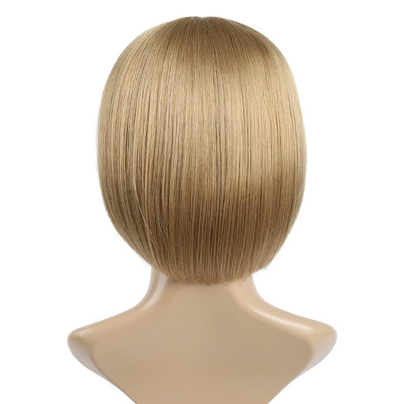 SYXLCYGG Bob Wig Short Blonde Wigs Flame Retardant 10" Straight Womens Synthetic Hair Wig With Bangs Girl Cosplay Party White Women Daily(Free Wig Cap)