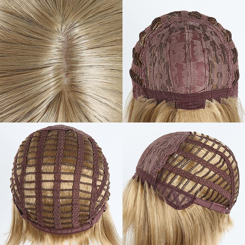 - Material and mesh cap: This wig is made of flame retardant lowtemperature synthetic fiber(Toyokalon). You can't use electric splints and electric rollers to shape your hairstyle again. If you want to use a temperature that must not be higher than 80 degrees, you can trim it according to your favorite length. This wig mesh cap is designed with 8 adjustable buckles, suitable for all women with a head circumference of 21.5-22.25 inches.