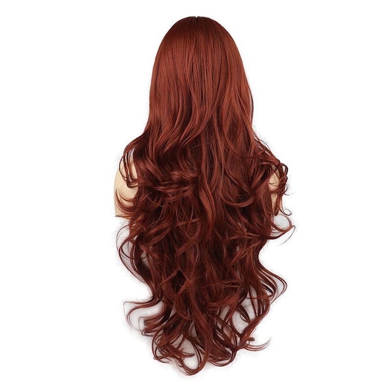 SYXLCYGG Long Auburn Wigs 28" Wavy Synthetic Daily Wigs Halloween Costumes Party Curly Hair Wig With Bangs Soft&Not Tangled for White Womens Natural Wigs Girls Ladies Real(free wig cap)