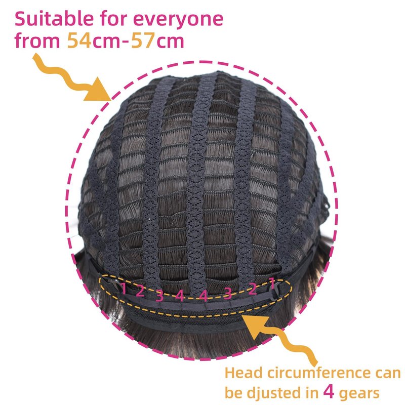 The product is equipped with a built-in wig cap and adjustable headband (about 20.8 "~22.25"), which is suitable for most women's head circumference