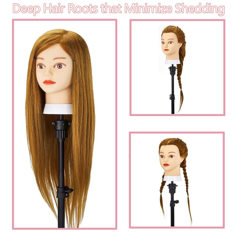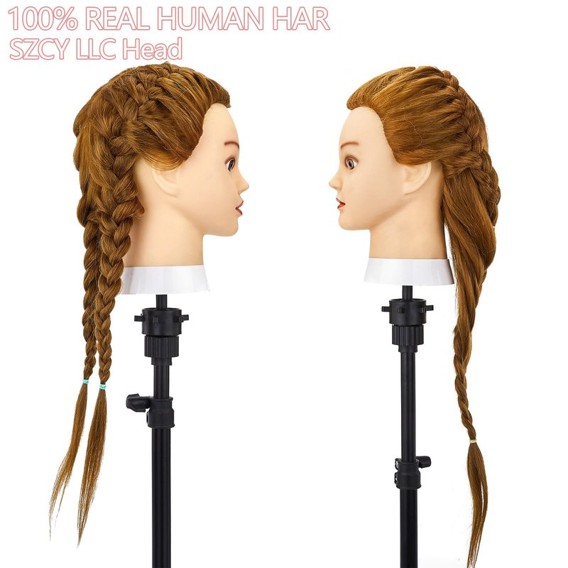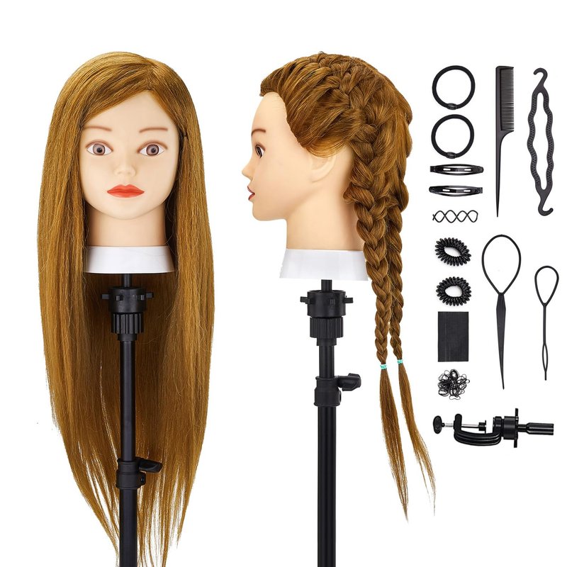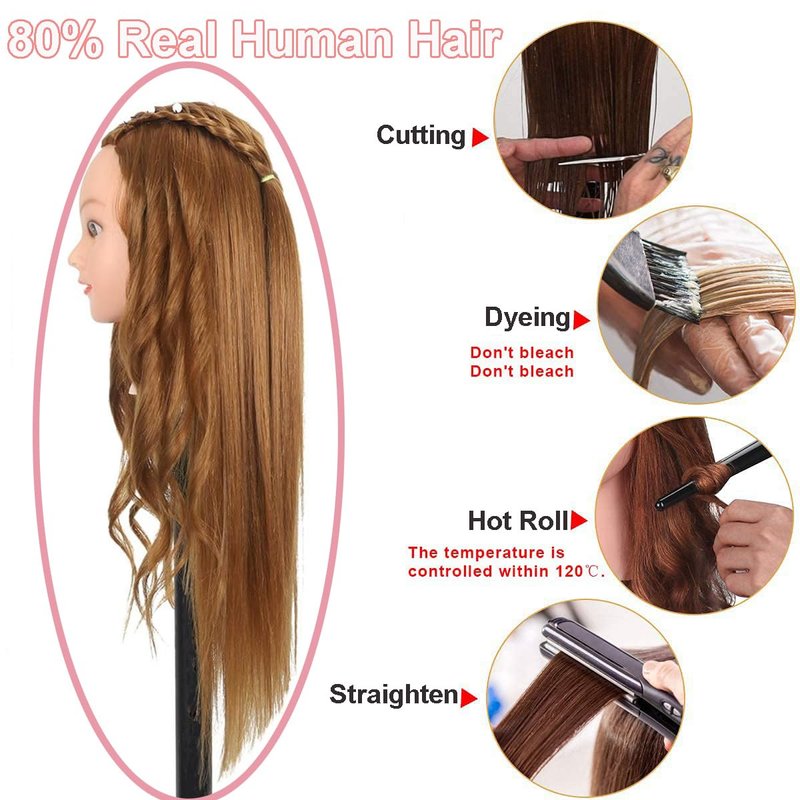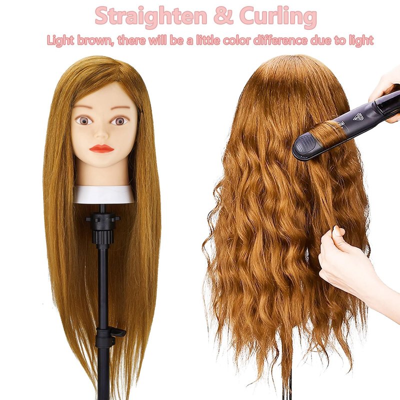 - 💘MULTI-FUNCTION OF COSMETOLOGY MANNEQUIN HEAD - Mannequin head human hair is perfect for braiding, styling, colouring, bleaching and can be used with hairdressing tools. Our brand guarantees that the quality of the hair will support all the functions that can be used over and over again.