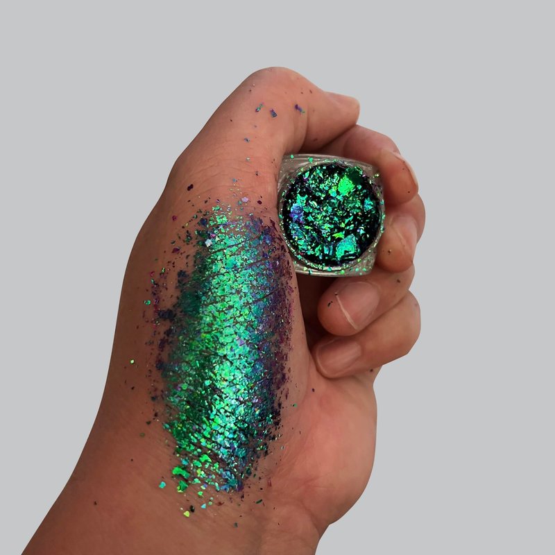 - Perfect Color Shifting — our duochrome flakes are out of this world! When viewed head on there only appears to be one color, however, color shifts become visible when viewed at different angles on a rounded surface (such as an eyelid) and in different lighting. Truly the magnitude of these pigments cannot be portrayed through photos alone!