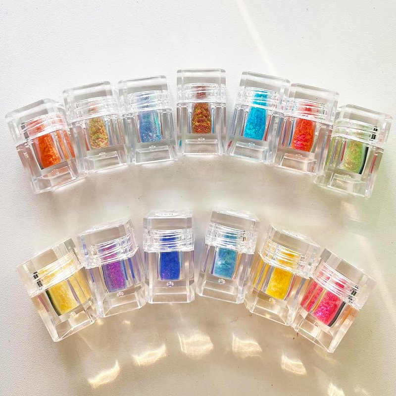 Perfect Color Shifting — our duochrome powder are out of this world! When viewed head on there only appears to be one color, however, color shifts become visible when viewed at different angles on a rounded surface (such as an eyelid) and in different lighting. Truly the magnitude of these pigments cannot be portrayed through photos alone!