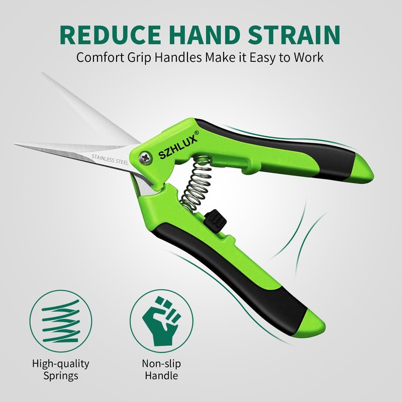 - Make Pruning Work Easier:The high-quality spring help you push the blades automatically, reduces hand fatigue while each cut. Ergonomic design rubber grip will make it easy to work for long periods of time without discomfort.