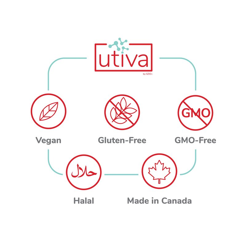 Utiva Probiotic is a simple and natural way to help support your intestinal and gastrointestinal health. Formulated to help maintain and restore gut flora, our unique blend of Lactobacillus and Bifidobacterium probiotic strains supports effective digestion and gut health, and is a great way to minimize any side effects due to antibiotics. To ensure you receive a large enough amount to make a difference, our natural and locally sourced probiotic supplement for women and men is 12 Billion CFU at expiration (30 Billion CFU at time of manufacturing), and our proprietary probiotic capsules are designed for targeted release by resisting stomach acid and enhancing stability. As well as bypassing the stomach to help ensure absorption in the gut, the delayed release capsules minimize any taste and odor, so taking your daily probiotic is a more pleasant experience - just take one convenient vegi capsule each day, 2-3 hours before or after antibiotics. And you can rest easy knowing that what you’re putting in your body is good for you – this vegan, gluten free, halal and non-GMO probiotic supplement is made in Canada, and contains no nuts, eggs, soy or dairy. Utiva was built on the belief that everyone deserves the best urinary tract health. Our vision is to provide best-in-class natural supplements and support systems and we’re empowering over 30,000+ people of all ages to proactively manage their urinary tract health every day!