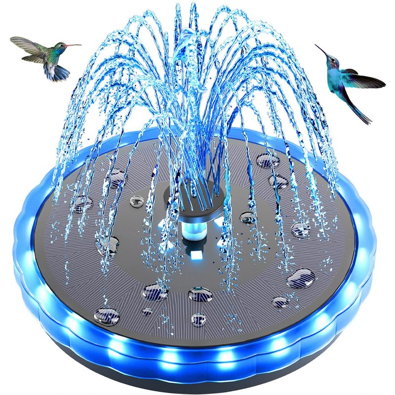 - 【Newly Upgraded 4W Solar Fountain】: The upgraded solar birdbath fountain is about 7.87 inches. Compared with ordinary floating solar fountains, it has more power, absorbs and converts light energy faster, makes the water spray more lasting and stable, and attracts more hummingbirds and butterflies to visit your garden ; Affected by the sunlight intensity, the water spray height of the fountain can be maintained at 5.9-23.6 inches.