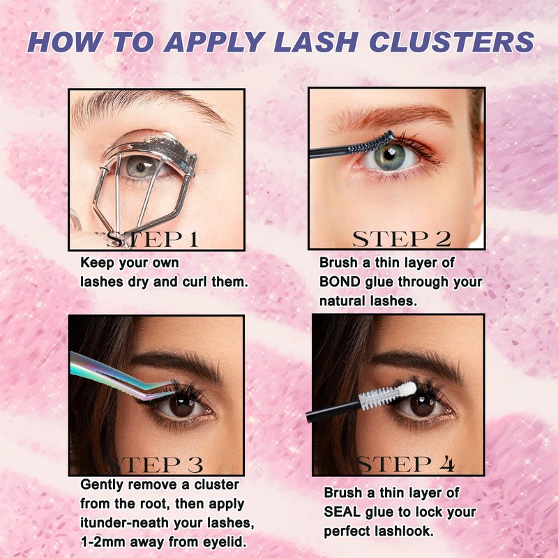 - 2.Clusted Lash Extensions Quality: These clustered lashes look like real lashes without the plastic feel, the lashes are made from soft faux mink fur, the premium lash extension kits offer 3D volumizing effect with a matte sheen, lightweight and soft texture, bringing you a whole new DIY Eyelash Extension kit experience, but also unparalleled comfort throughout the day.