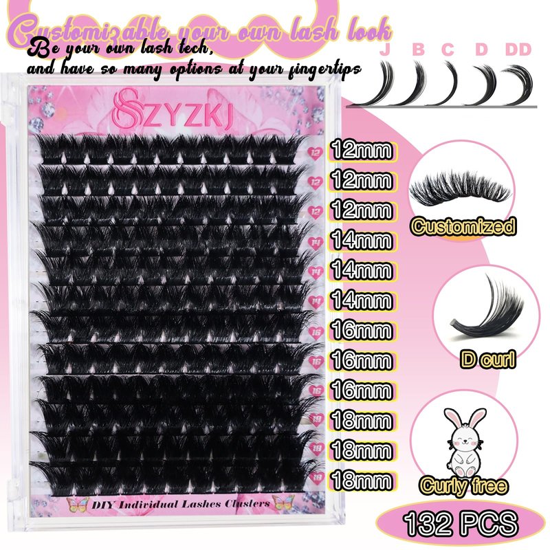 - 1.Volume eyelashes extension kit which includes 132pcs individual lashes, DIY your own Eyelash Extensions with 12-18mm , D curl of volume cluster lashes, the mixed length allow for precision application, gorgeous results, and lash clusters are not easily fall apart, giving you the freedom to customize your lash look to your needs.