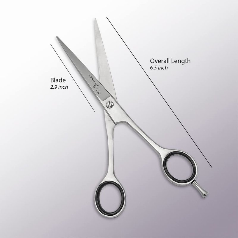 - The length of Hair Cutting Scissor is 6.5 inches. The Hair scissors are perfect for trimming hairs, eyebrows, thick beard, styling hairs, grooming pets.